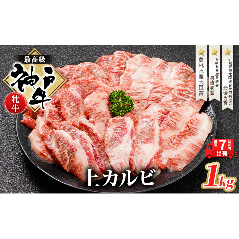【最短7日以内発送】 神戸ビーフ 神戸牛 牝 上カルビ 焼肉 1000g 1kg 川岸畜産 大容量 冷凍 肉 牛肉 すぐ届く お肉 和牛 食材 グルメ ブランド牛 日本産 国産 夕飯 晩御飯 夜ごはん