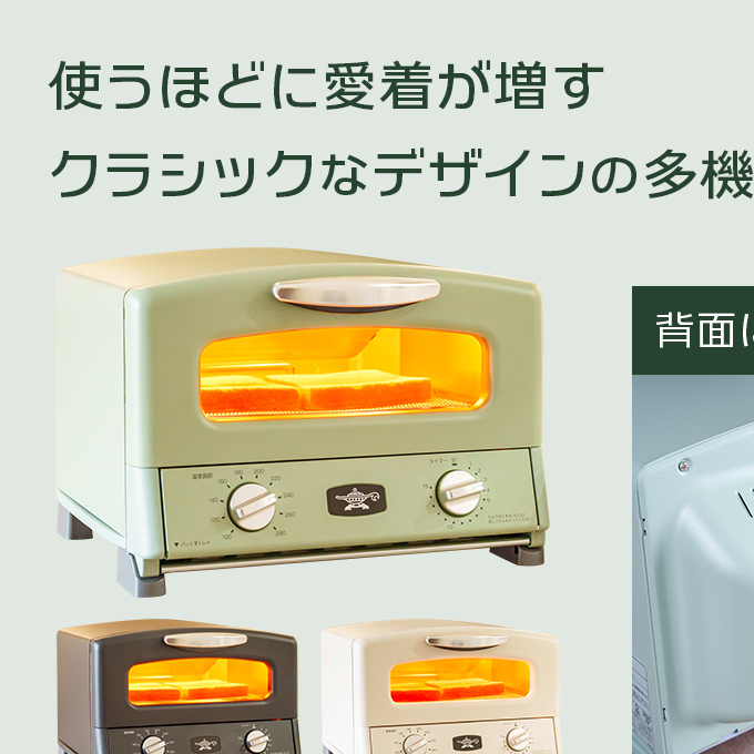 食パンを4枚同時に焼くことができるレトロ調のデザインのトースター。