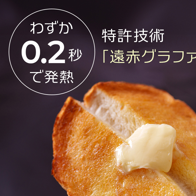 「遠赤グラファイトヒーター」搭載で0.2秒で発熱!食パンを外はカリッと中はふんわりモチモチの焼き上がり。