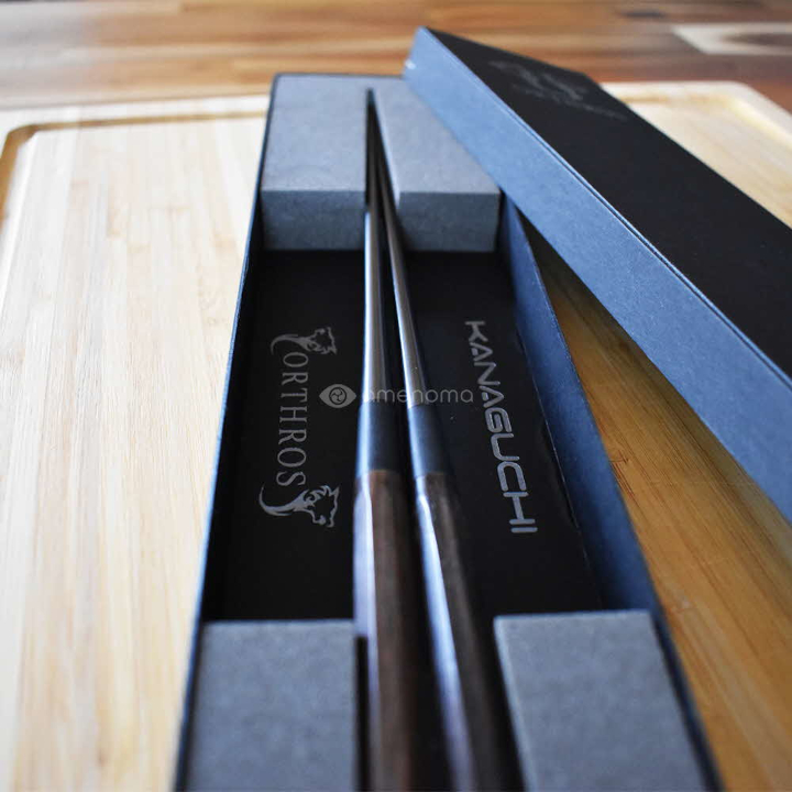 マットな黒染刃が渋い。高級天然木『黒檀』六角柄盛箸『ORTHROS』です。