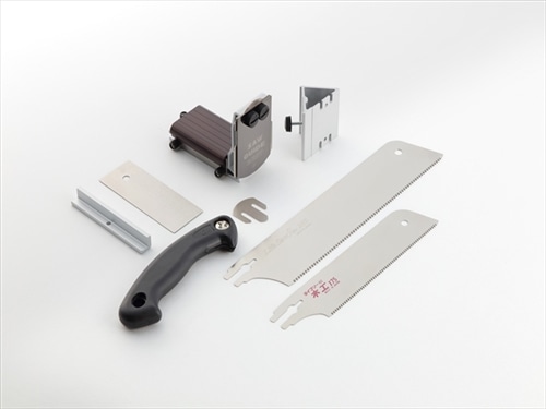 超まっすぐに鋸(ノコギリ)を挽くための道具「ソーガイド・ベスト」と、本格的なDIY用のこぎり「ライフソー9寸目265」、切り口がきれいな「ライフソー木工175」がセットになっています。