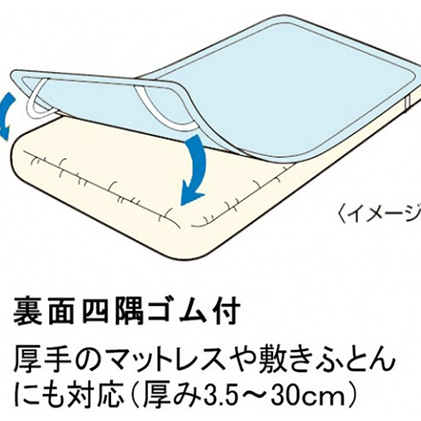 ※四隅ゴムは敷布団から厚さ30cmほどのマットレスにもお使いいただけます。(強引な引っ張りはゴムがちぎれる原因になりますので、ご注意ください。)