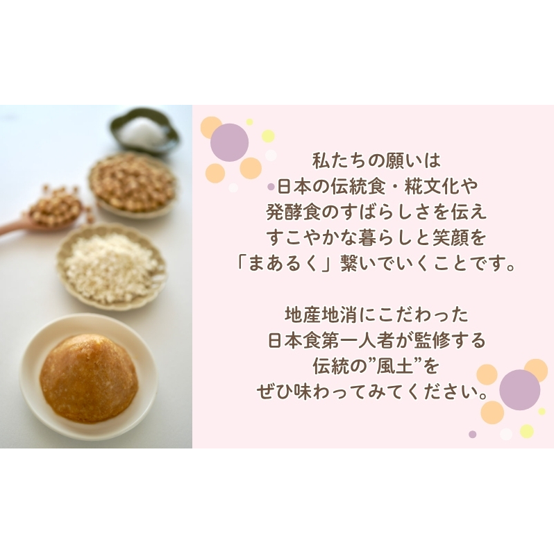 計量済みの《まんまる糀》(地元米原産高級コシヒカリ使用)と滋賀県産大豆を使用し、まんまる日和独自の配合で、深い味わいを実現しています。