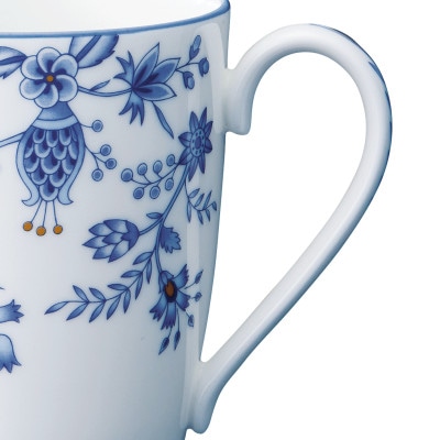 ゴールドの代わりにブルーのラインを縁に引いた電子レンジ・食洗機対応のマグ、プレート、ボウルが加わり、さらにお使いいただきやすくなりました。