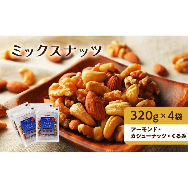 ナッツ 無添加 ミックスナッツ 3種 標準1.28kg (標準1袋320g×4袋)有馬芳香堂 アーモンド カシューナッツ くるみ 無塩 素焼き ノンフライ おやつ お菓子 おかし おつまみ 兵庫県 兵庫 稲美町