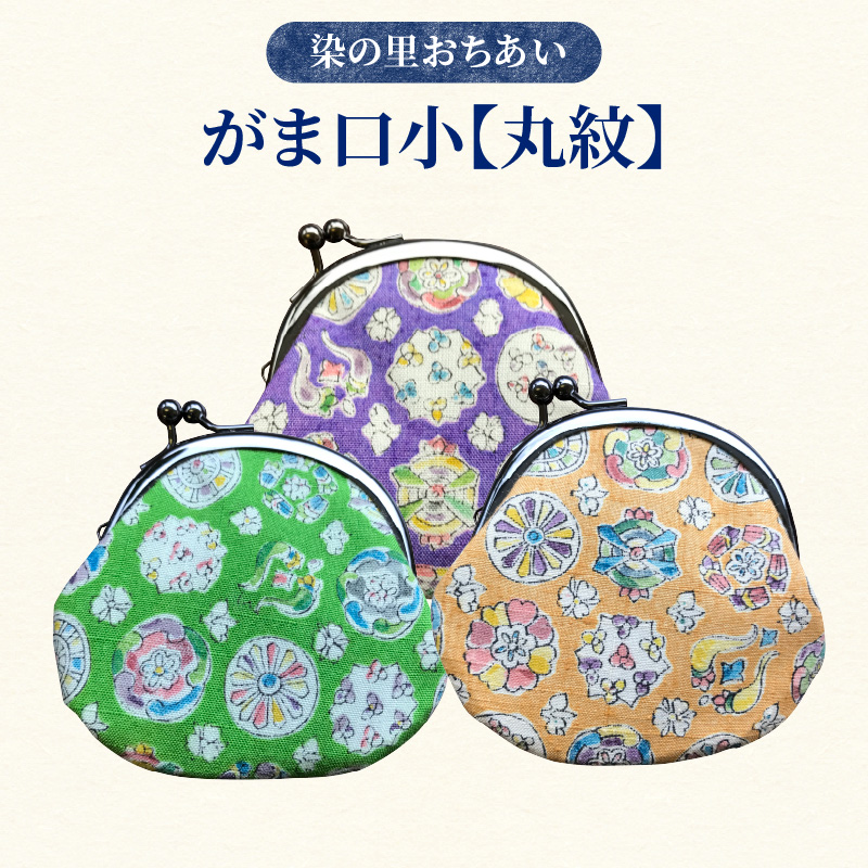 二葉苑の手染めの着物生地を使って小さながま口に仕立てました。江戸更紗の伝統的な製法で染め付けました。カラーバリエーションは全部で3種類。①紫②黄緑③黄色手染めの絹を使用したがまぐちです。海外の方へのお土産などにも是非!お申し込みの際、ご希望の(色)を事前にお選びいただき、必ず備考欄へご記入下さい。①紫②黄緑③黄色【地場産品に該当する理由】区域内で柄のデザイン・染色を行うことで、相応の付加価値が生じているため(告示第5条第3号に該当)