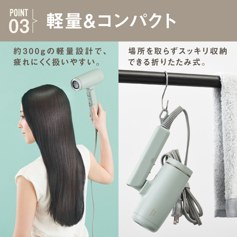 時短をかなえる「速乾力」と、毎日使いやすい「超軽量」を両立したコンパクトヘアドライヤー。