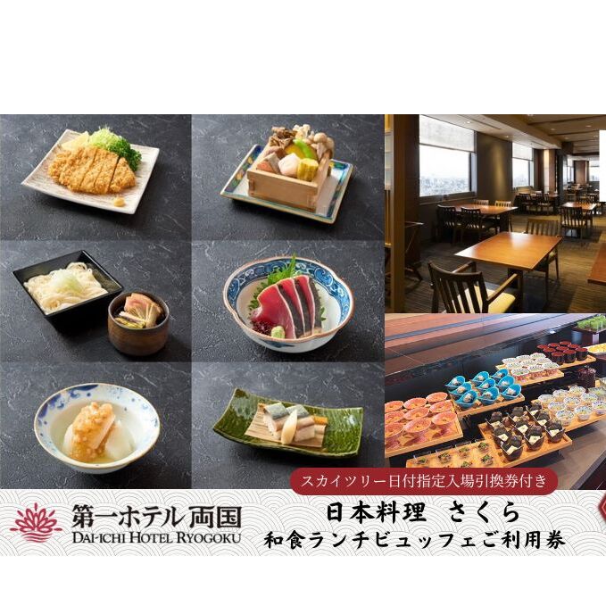 ランチ 東京 第一ホテル両国 東京スカイツリー ( 登録商標 ) 日付指定入場引換券付き さくら 和食 ブッフェ ペア 利用券 食事券 ビュッフェ ホテル チケット ギフト スカイツリー 展望デッキ 旅行 ペアチケット ギフト SKYTREE