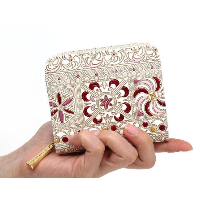 【文庫屋大関】二つ折りファスナーミニ財布 錦紗<ピンク>【皮革工芸品】財布 二つ折り 小物 お札 カード 小銭 コンパクト 牛革 手作り 日本製 墨田区 東京都