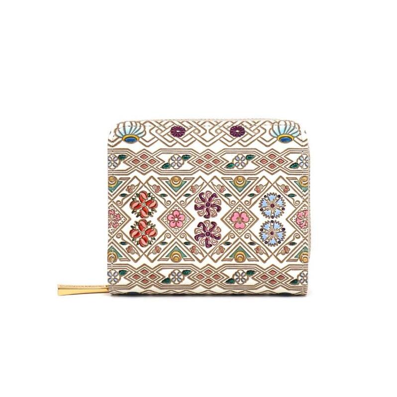 【文庫屋大関】二つ折りファスナーミニ財布 花菱【皮革工芸品】財布 二つ折り 小物 お札 カード 小銭 コンパクト 牛革 手作り 日本製 墨田区 東京都