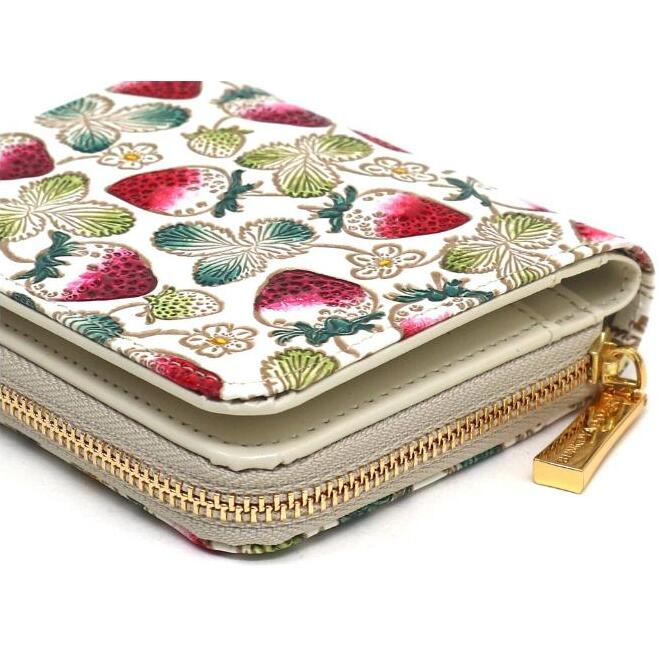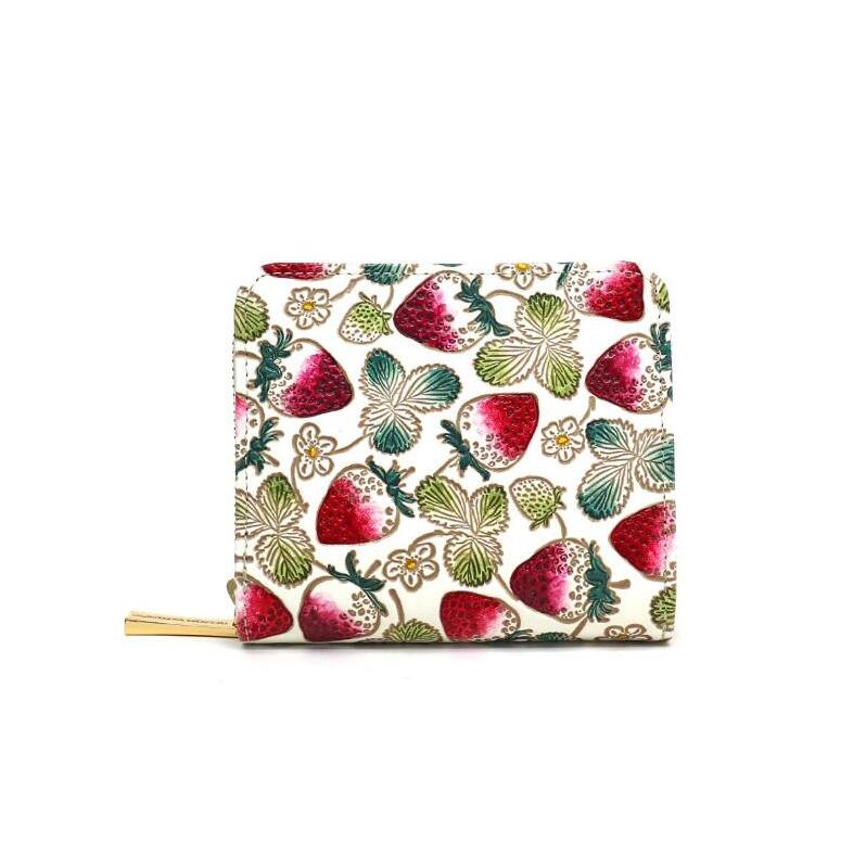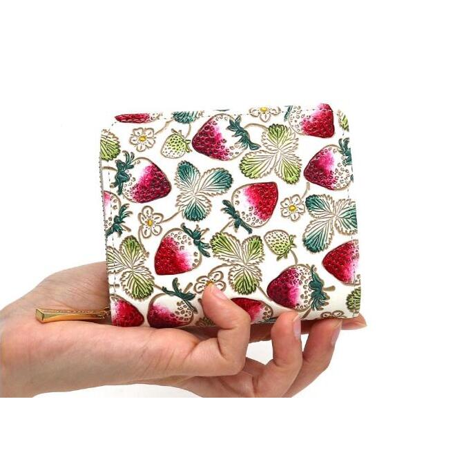 【文庫屋大関】二つ折りファスナーミニ財布 いちご【皮革工芸品】財布 二つ折り 小物 お札 カード 小銭 コンパクト 牛革 手作り 日本製 墨田区 東京都
