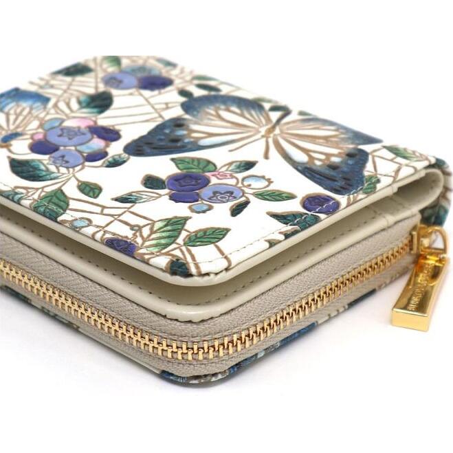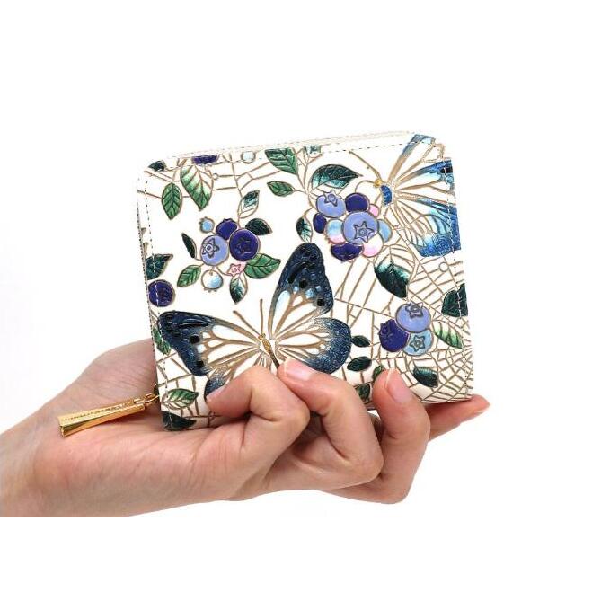 【文庫屋大関】二つ折りファスナーミニ財布 ブルーベリーは願う<ネイビー>【皮革工芸品】財布 二つ折り 小物 お札 カード 小銭 コンパクト 牛革 手作り 日本製 墨田区 東京都