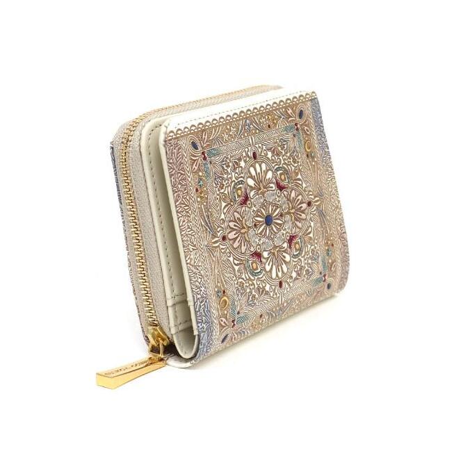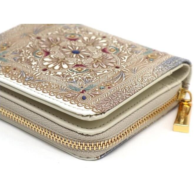 【文庫屋大関】二つ折りファスナーミニ財布 夢幻のタピ【皮革工芸品】財布 二つ折り 小物 お札 カード 小銭 コンパクト 牛革 手作り 日本製 墨田区 東京都