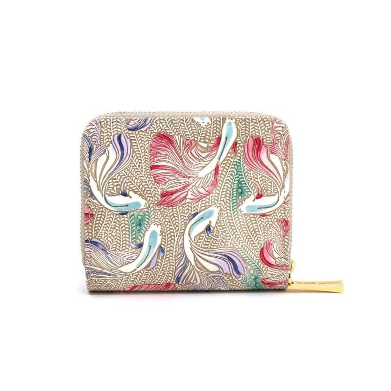 【文庫屋大関】二つ折りファスナーミニ財布 ラビリンスフィッシュ<パープル>【皮革工芸品】財布 二つ折り 小物 お札 カード 小銭 コンパクト 牛革 手作り 日本製 墨田区 東京都