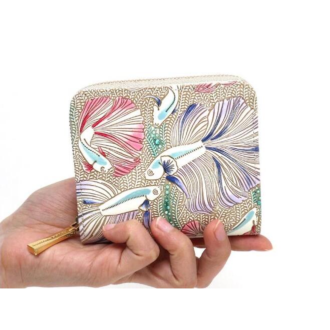 7. 【文庫屋大関】二つ折りファスナーミニ財布 ラビリンスフィッシュ<パープル>【皮革工芸品】財布 二つ折り 小物 お札 カード 小銭 コンパクト 牛革 手作り 日本製 墨田区 東京都
