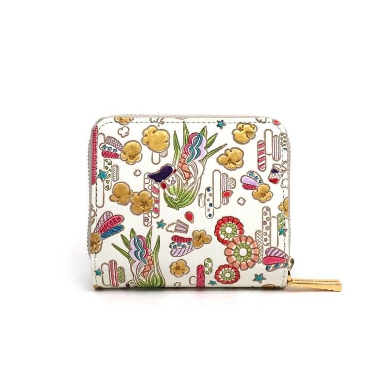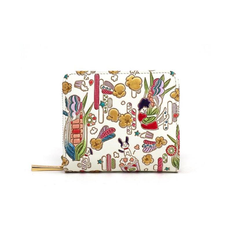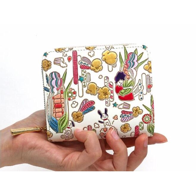 【文庫屋大関】二つ折りファスナーミニ財布 弾けるもろこしガール【皮革工芸品】財布 二つ折り 小物 お札 カード 小銭 コンパクト 牛革 手作り 日本製 墨田区 東京都