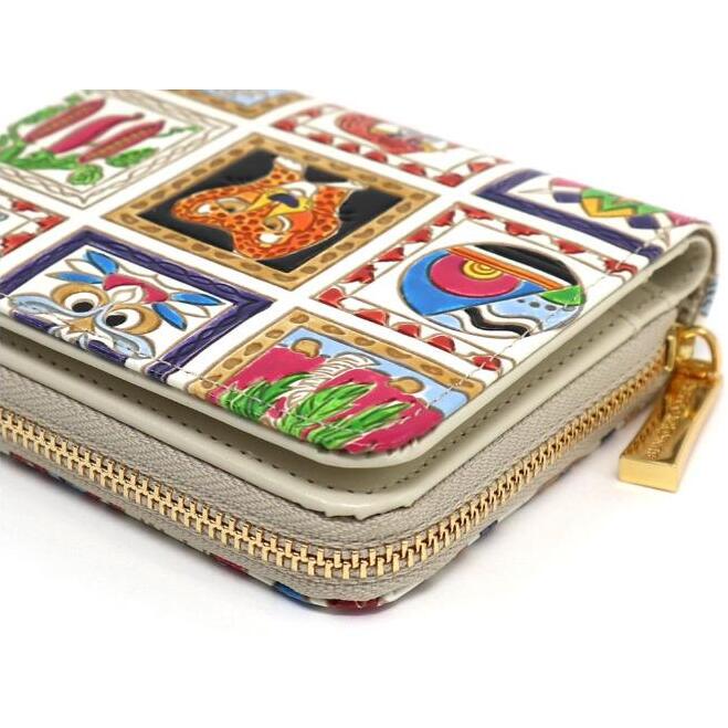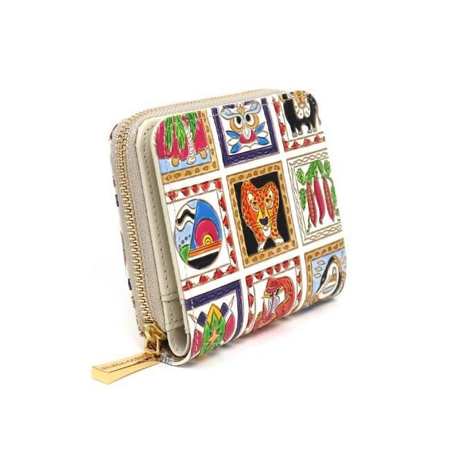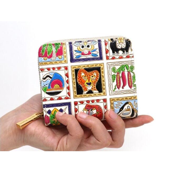 【文庫屋大関】二つ折りファスナーミニ財布 アフリカ【皮革工芸品】財布 二つ折り 小物 お札 カード 小銭 コンパクト 牛革 手作り 日本製 墨田区 東京都