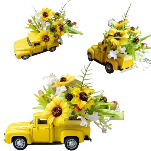 7. ひまわりミニカー 造花 アレンジ インテリア 可愛い ミニチュア アレンジメント ギフト プレゼント 雑貨 ひまわり イエロー 墨田区 東京