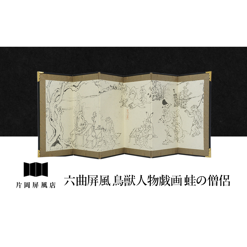 六曲屏風 鳥獣人物戯画 蛙の僧侶 屏風 インテリア 飾り 和風 アート 屏風絵 墨田区 東京都