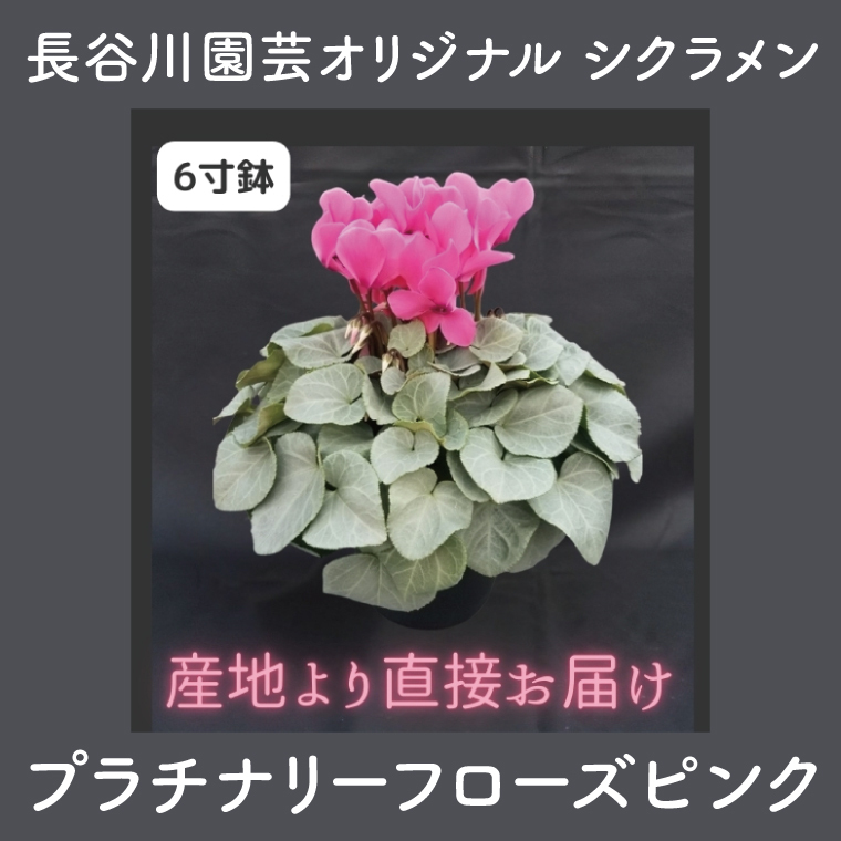 【先行予約】【長谷川園芸】オリジナル品種 シクラメン プラチナリーフ 6寸 ローズピンク【冬のギフト フラワーギフト クリスマス 鉢花】 (AT019)