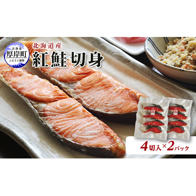 北海道産 紅鮭 切身 4切入×2パック (合計8切入) 切り身 鮭 紅鮭切身 国産 切身 魚貝類 海の幸 海鮮 朝ごはん 朝食 夕飯 晩御飯 お弁当 おにぎりの具 甘塩紅鮭 食材 食べ物 料理 調理