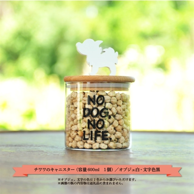 7. チワワのキャニスター(オブジェ白・文字色黒)/600ml【17015】