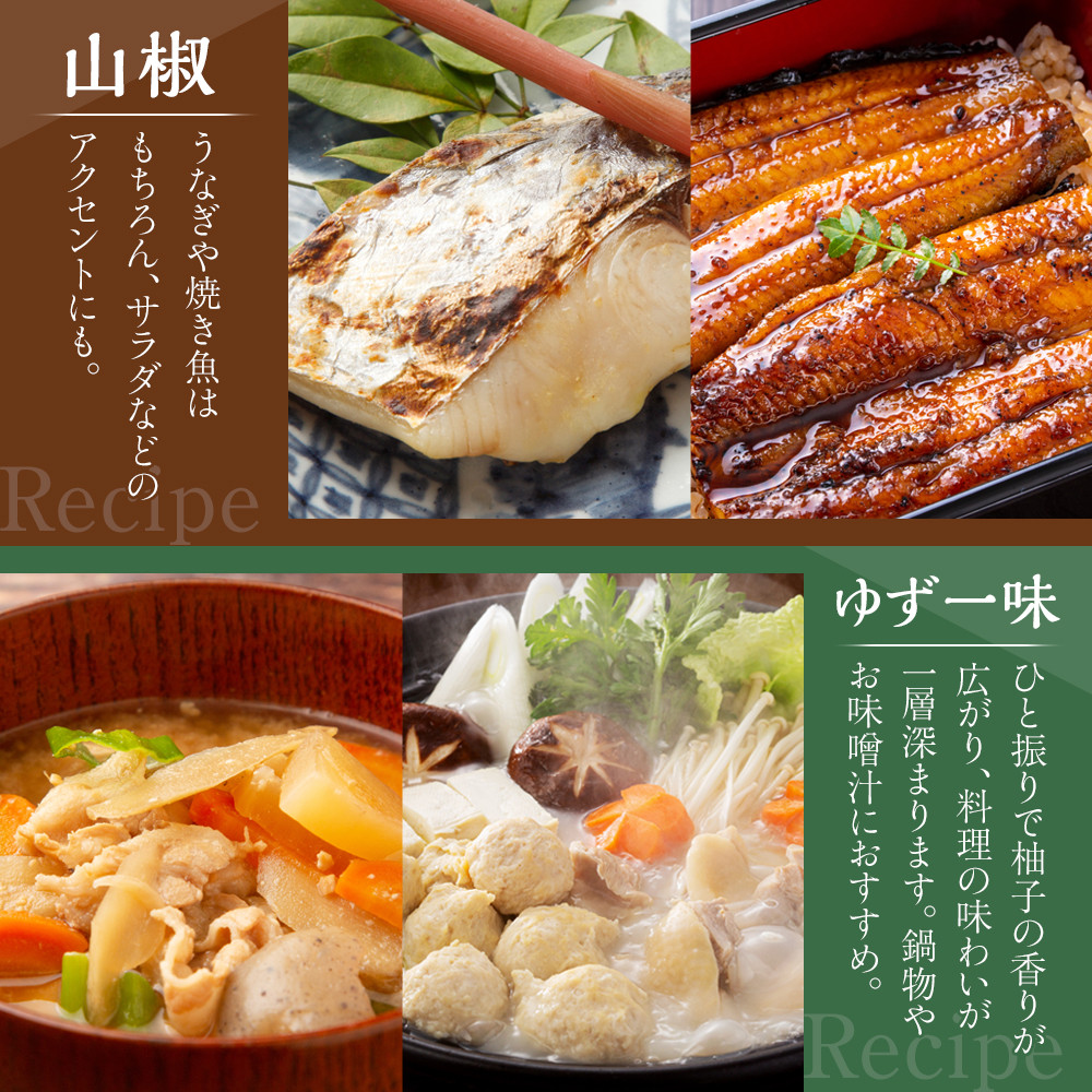 名称山椒の粉、ゆず一味