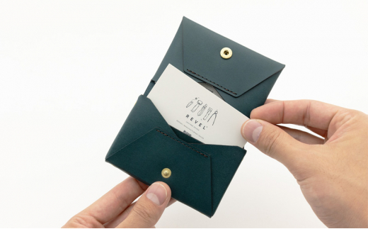 REVELの得意とする折革技法を活かした箱型の立体構造で、収納力が高いですが表面に縫い目がない為通常の名刺入れより一回り小さくスッキリとしたデザインです。