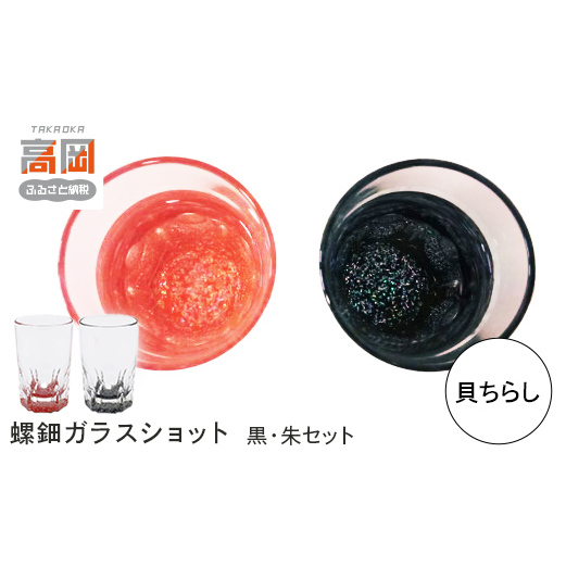 螺鈿ガラスショット(黒・朱セット) 貝ちらし 高岡漆器 グラス 酒器 杯 盃 セット 民芸品 工芸品 食器 コップ FAD-0034
