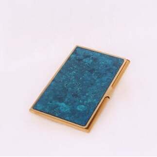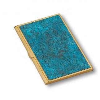 挨拶時の「顔」となる名刺入れ、真鍮製の本体ケースに”Orii Blue"の着色銅板を貼り合わせた逸品です。