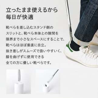 重量は軽く、膝を曲げずに使用することができるこの靴べらは、すべてのユーザーにとって生活負担をなくすものになると同時に、玄関周りの景観も美しく保つことができます。ライトグレーはラインナップに新たに加わった新色です。