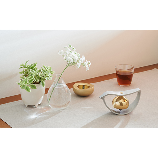 ゆりかごのような本体をゆらゆら揺らすと大きく澄み切った音が鳴りわたります。くちばしのようなスリットにはメッセージカードをはさむことが出来ます。
