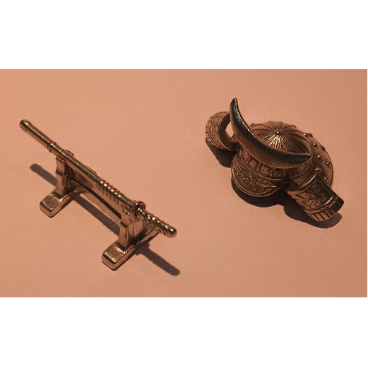 武士の装束は、古くから出世と成長の象徴とされていました。特有の柔らかい光沢を放つ金“錫”の鋳物技術を活かし細部まで精巧に作りました。戦で使用した物(兜、刀)をモチーフにしました。