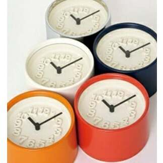 この「小さな時計」の最大の特徴は、立体的な文字にあります。一体成型により、凸状に浮かび上がったかたちが、美しい陰影を作り出しています。