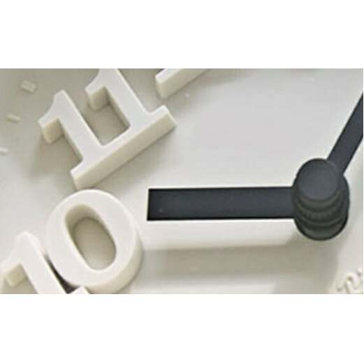 この「小さな時計」の最大の特徴は、立体的な文字にあります。一体成型により、凸状に浮かび上がったかたちが、美しい陰影を作り出しています。