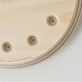 この時計はPaper-Woodの素材としての本来の魅力をより感じてもらうために、主張し過ぎないデザインを心掛けてつくられました。結果として素材の存在感と時刻を提示するという機能が、バランス良く融合したプロダクトになりました。指標を表す線や点は、木工のCNC技術で加工しています。彫り込みによって表れる色のラインはPaper-Woodならではの表現です。