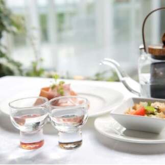 “ガラス素材”に高岡漆器の代表的な特徴の一つである螺鈿(あわび貝)技法をとりいれ、漆で仕上げた「螺鈿ガラス」。持ちやすく、シンプルな杯にお酒を注げば、螺鈿の神秘的な輝きが広がるとともに、横からも螺鈿細工を楽しむことができます。