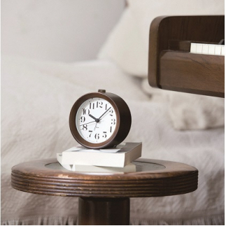RIKI ALARM CLOCKは、大きめの12個の数字を使用した視認性の高い文字盤とシンプルなフォルムが美しく融合されています。木製の丸みを帯びた枠体は、軽やかで、柔らかな印象を与えます。木目の美しさが特徴的です。
