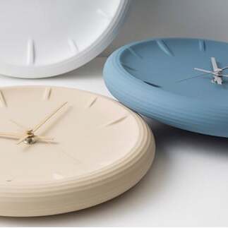 ガバ鋳込みと呼ばれる製造方法の特徴をいかした、磁器の時計です。
