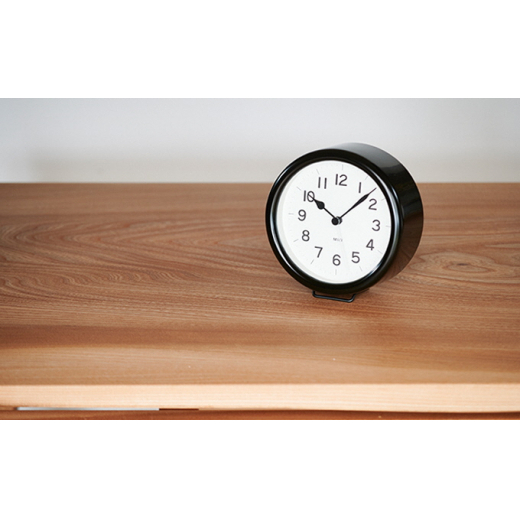 艶がある漆塗りの雰囲気に合わせて時計の針も艶ありの塗装を施し、文字盤の数字と指標も印刷面が盛り上がる特殊な印刷加工をしています。