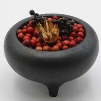 真鍮の素材自体を化学変化をさせた後に漆で黒く着色しているので、じわっと表れている模様が特徴的な逸品です。