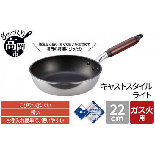 フライパン ガス火用 キャストスタイルライト 22cm テフロン 軽量 北陸アルミ 北陸アルミニウム 日本製 調理器具 キッチン用品 日用品 富山県 アルミキャスト製 厚手調理器 熱伝導性 保温性 均一 加熱 プラチナ 加工 FAD-0975