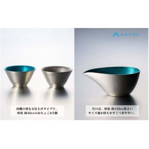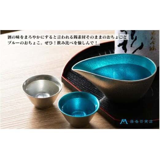 6. 【能作】藤巻百貨店別注 酒器セット(片口ー小+盃ー喜器ーII「fujimaki blue」) 民芸品 工芸品 FAD-1021