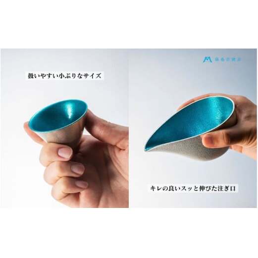 ※内側の着色部分は、染色工程で色ブレが起きるため、個体によって若干異なる色に仕上がります(個体差)。片口と盃はできるだけ同じ色を組み合わせて出荷しておりますが、手作りの風合いとして個体差をお楽しみいただけると幸いです。また、片口と盃では器の深さも異なり、光の入り方で違う色に見えることもあります。