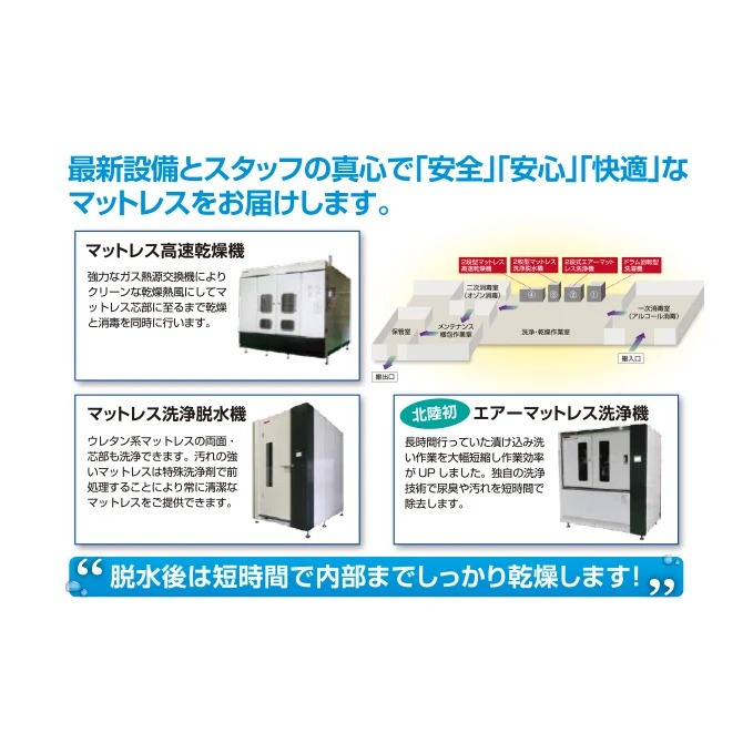 マットレス丸洗いについてのお問い合わせは…北一株式会社 MC事業部 電話番号:0766-22-0002(受付時間9時~17時/土・日・祝日を除く)