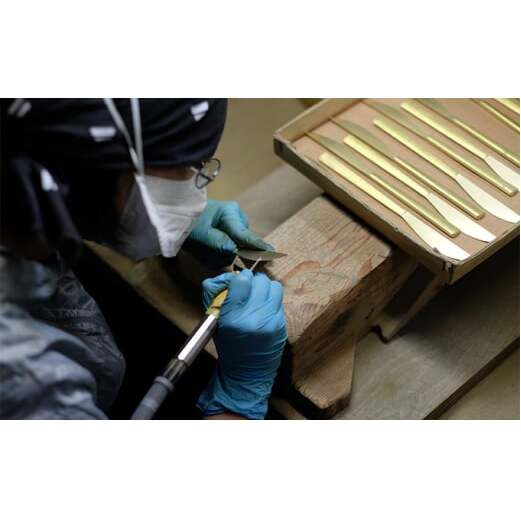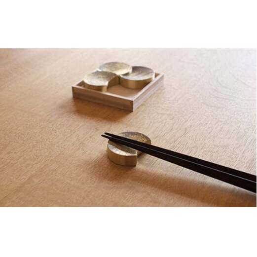 真鍮の生活用品ブランド「FUTAGAMI」の「光」をテーマに鋳肌を活かして形作られた箸置きです。