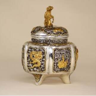 [高岡銅器] 銀製 六陵瑞鳥紋香炉(小) インテリア 工芸品 装飾品 民芸品 伝統技術 FAD-1245