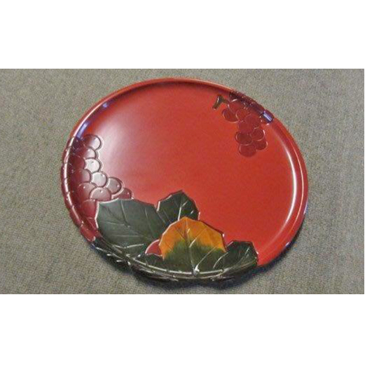 7. 【高岡漆器】11丸盆 彩色 ぶどう彫 お盆 伝統技術 富山県 高岡 FAD-1414
