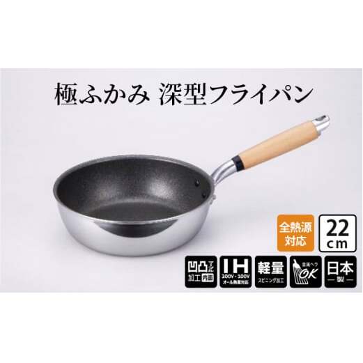 【IH対応】極ふかみ 深型フライパン22cm IH対応 全熱源対応 北陸アルミニウム 日本製 調理器具 キッチン用品 日用品 富山県 FAD-1432