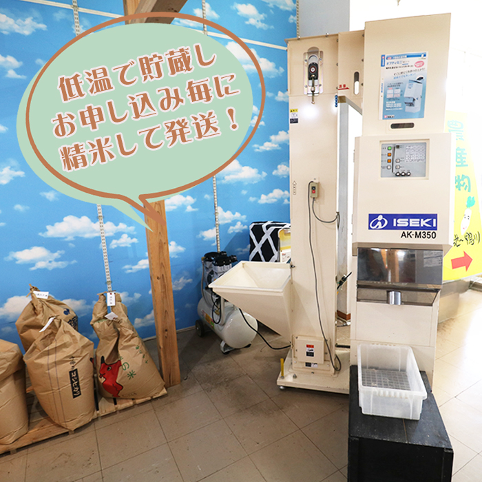 お米は玄米のまま13℃の低温貯蔵庫で保管し、ご注文ごとに精米して発送。